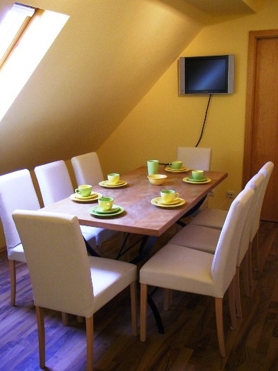 Wohn-/ Essecke für ca. 8 Personen mit digitalem SAT-TV u. DVD-Player, CD-Radio