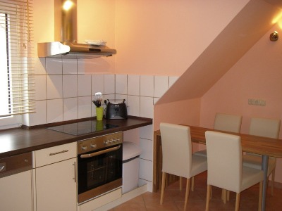 Küche: Cerankochfeld, Backofen, Microwelle, Kaffemasch., Toaster, Kühlschrank, Spülmaschine, Wasserkocher, weitere Essecke für 5 Personen