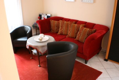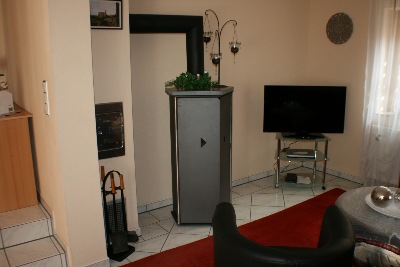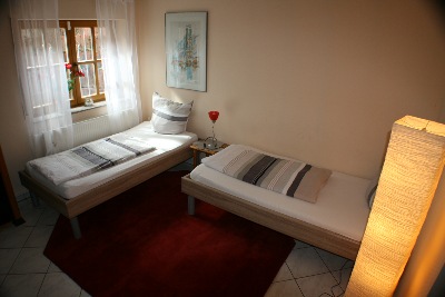 Geräumiges Wohn-, Schlafzimmer mit Wohlfühlsofa, zwei Einzelbetten, digitalem Sat-TV, DVD-Player und CD-Radio, sowie Internet (W-Lan) kostenlos, modernem Kaminofen.