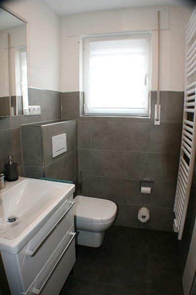 - 2 helle Tageslicht-Bäder mit Waschbecken, Badewanne bzw. Dusche und 2 x WC