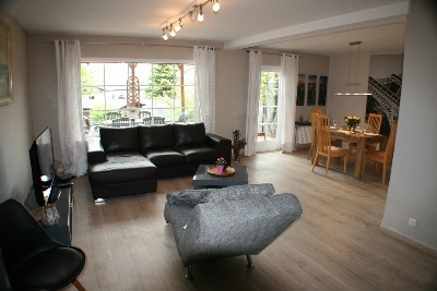 - Wohnzimmer mit Sofa, Liegesessel, Sat-TV, und gemütlicher Essecke