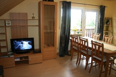 - Ein großes Wohn- Esszimmer mit digitalem SAT-TV und DVD-Player, CD-Radio